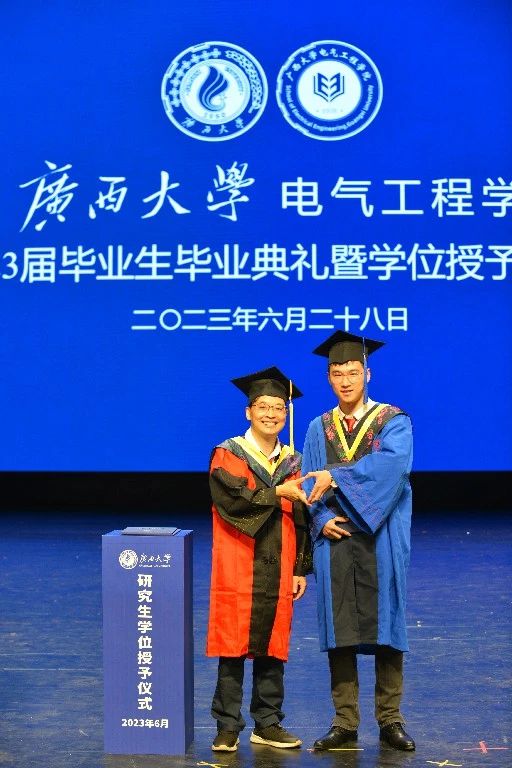 在同学们热烈的掌声中,2023届毕业典礼暨学位授予仪式拉开帷幕。院党委书记梁志坚为获得“必赢线路检测3003优秀毕业生”的学生代表颁发证书;院长双丰为获得“广西壮族自治区优秀毕业生”的学生颁发证书;副院长刘辉和副院长于婷为毕业生代表颁发2023届毕业纪念品;副院长李畸勇为毕业生代表颁发“必赢线路检测30032023届优秀本科生毕业设计奖”。